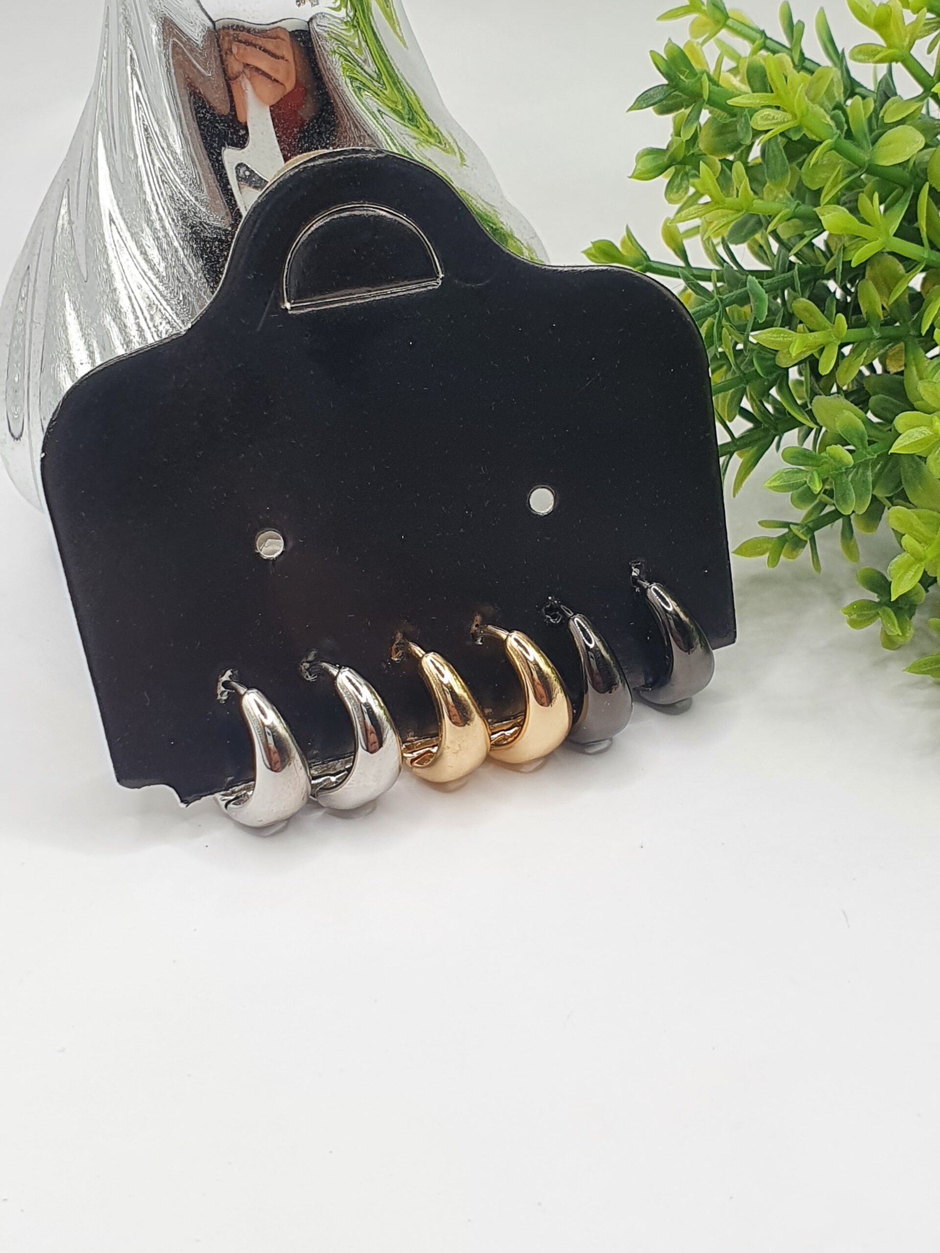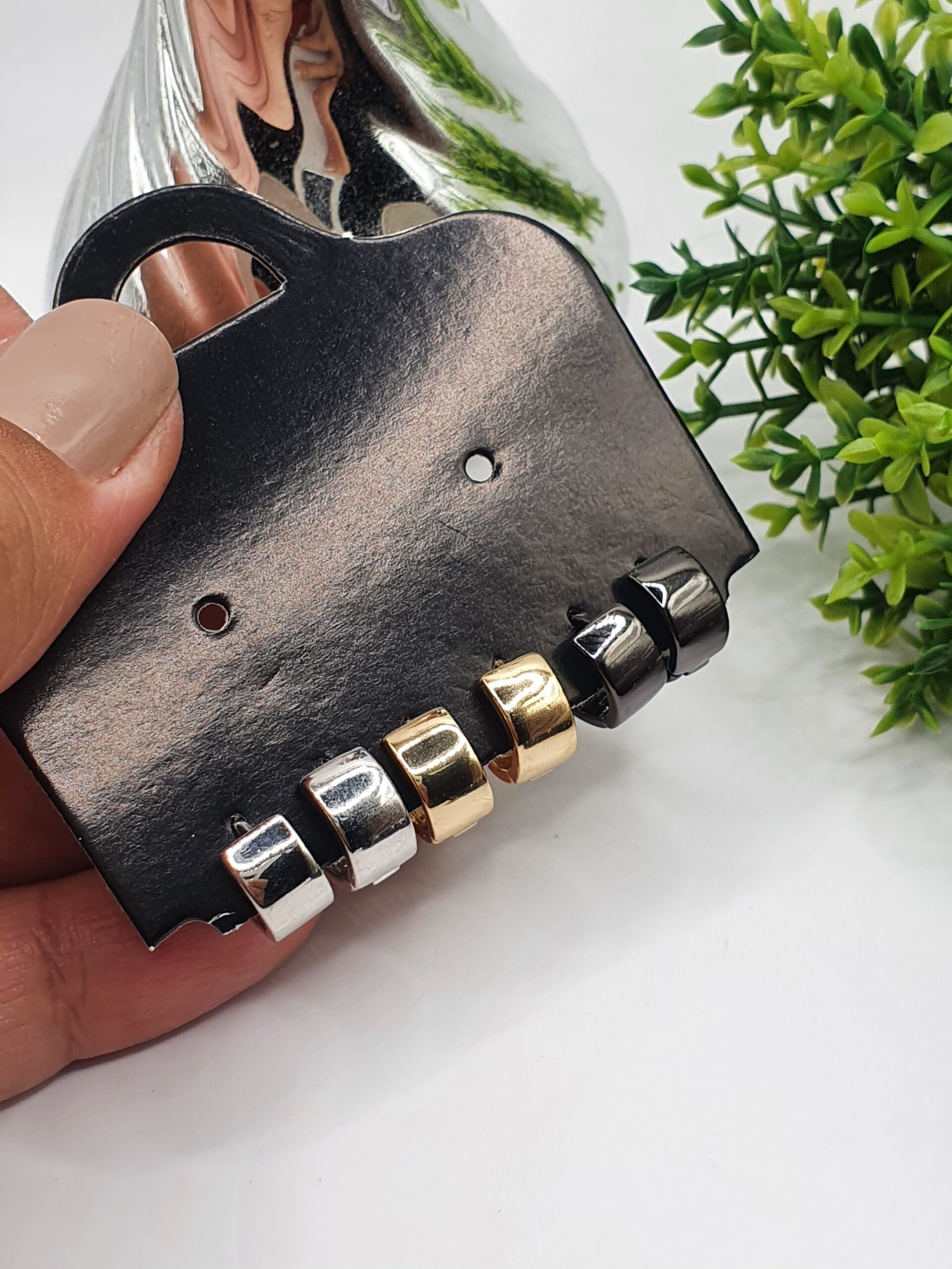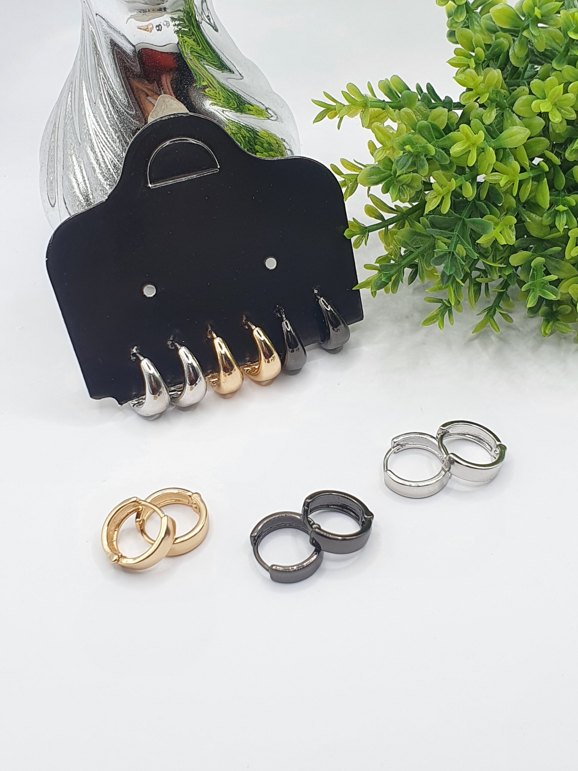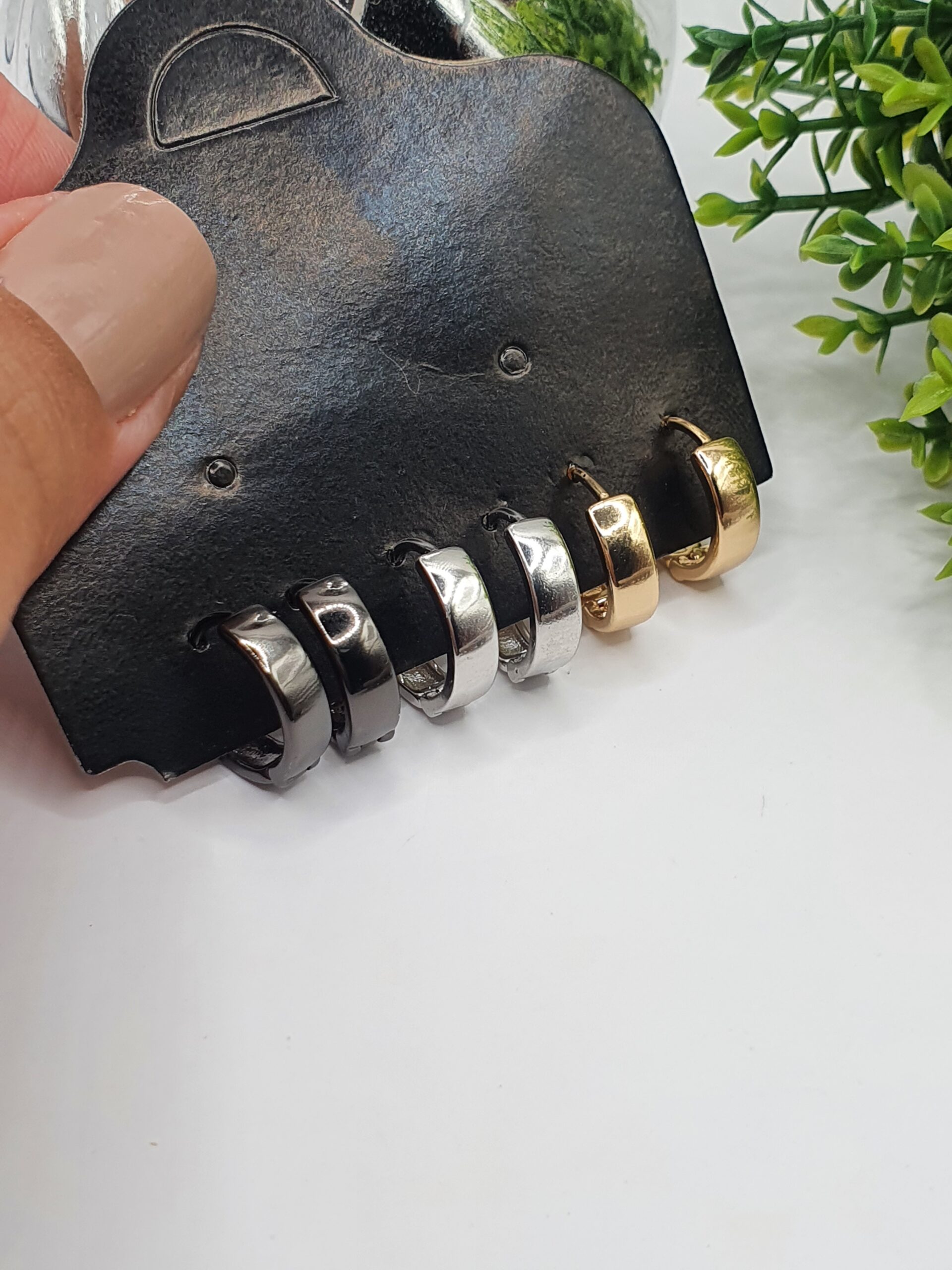 Peças folheadas, um par em dourado, um par ródio branco e uma par ródio negro.